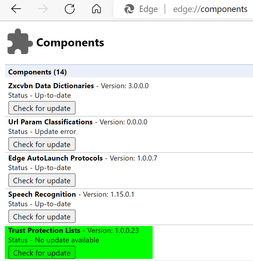 这些列表通过“信任保护列表”组件提供,该组件可在 edge://components 中查看。