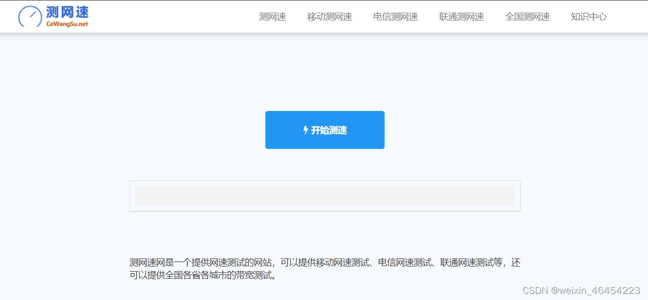 cewangsu.net 是广泛使用的在线网速测试工具之一。你只需要访问他们的网站,“开始测速”按钮,几秒钟内便可获得你的网速数据。不论你的网络是电信、移动、联通还是鹏博士等等,都可以使用cewangsu.net迅速测出真实的网络速度。
