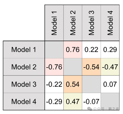 最后,以MAdE为因变量,模型架构为固定因素,主题ID为随机因素拟合LMEM模型。在不同的体系结构中,估计的系数差别很大。方差分析差异有统计学意义。事后两两分析显示,除模型1和模型4外,所有对之间均有统计学意义。