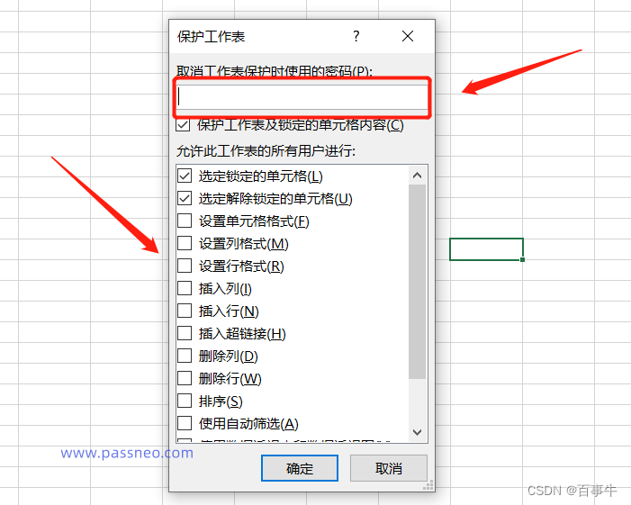 打开“保护工作表”对话框后,勾选“保护工作表及锁定的单元格内容”,然后在密码栏输入想要设置的密码,再点击“确定”,就设置好了。