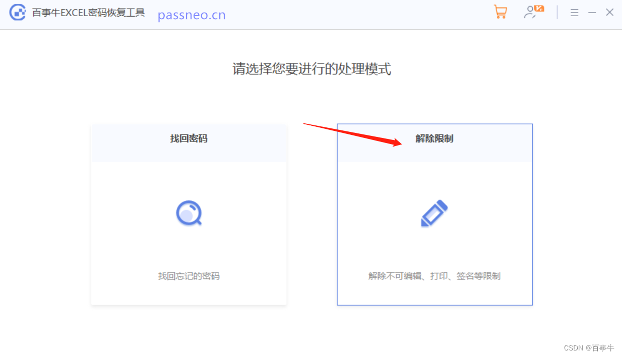 只需要点击工具里的【解除限制】模块,然后将Excel表格导入工具,即可一键解除。
