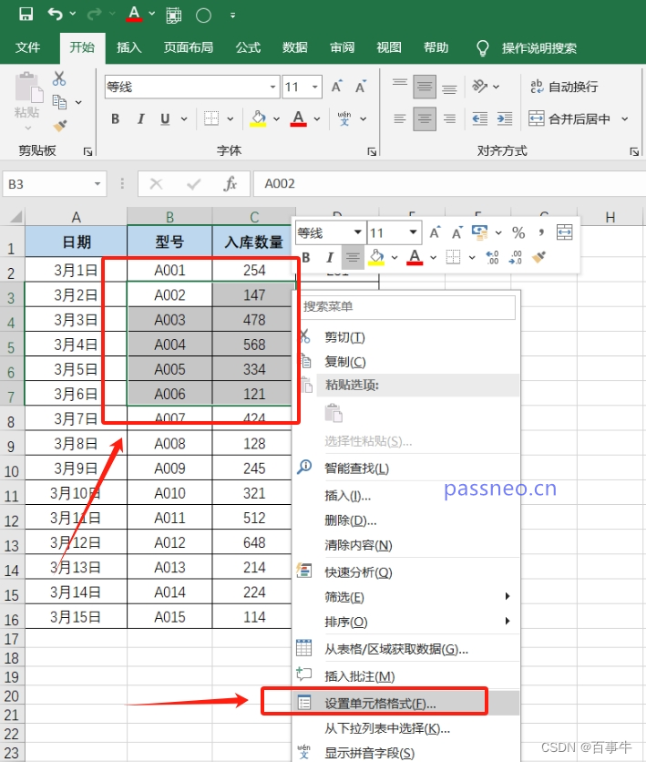 首先,选中需要隐藏的单元格,比如图中所示,然后点击鼠标右键,并在列表中选择“设置单元格格式”;