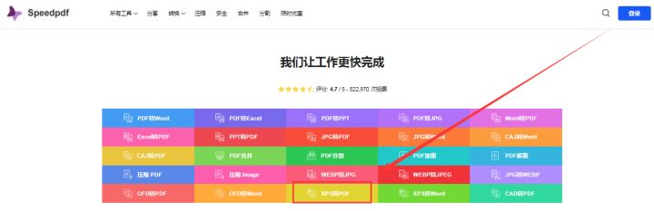 搜索打开浏览器搜索speedpdf找到这个免费在线转换工具后,进入并选择XPS转PDF。