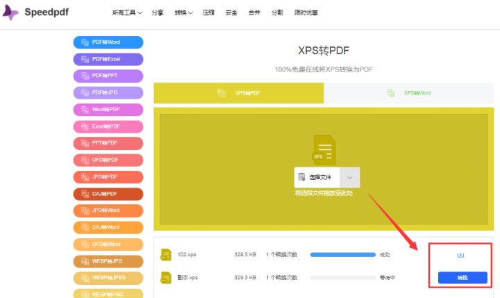 添加需要转换的XPS文件后,点击转换按钮就可以了。等待转换完成直接下载即可。