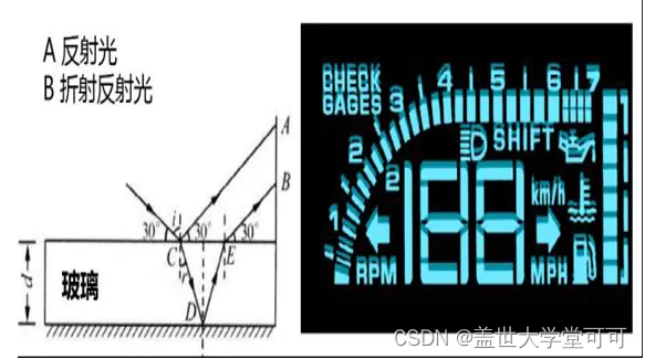 汽车普通的前挡风玻璃使用夹层结构,由双层玻璃与内部PVB 夹层组成,如果将HUD图像直接投射到前挡风玻璃上容易出现重影,影响显示效果,因此需要对挡风玻璃进行特殊处理。目前的主流解决方案有两种: