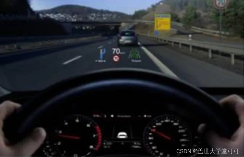 HUD(Head Up Display,抬头显示系统)是将车速、油耗、胎压等行车重要信息投影到前方挡风玻璃上的一套显示系统。HUD 最早应用在战斗机上,旨在降低飞行员低头查看仪表的频率,使得飞行员能在保证正常驾驶的同时,观察到各项重要指标并接收地面传输的信息,从而提升飞行的安全性和便捷性。