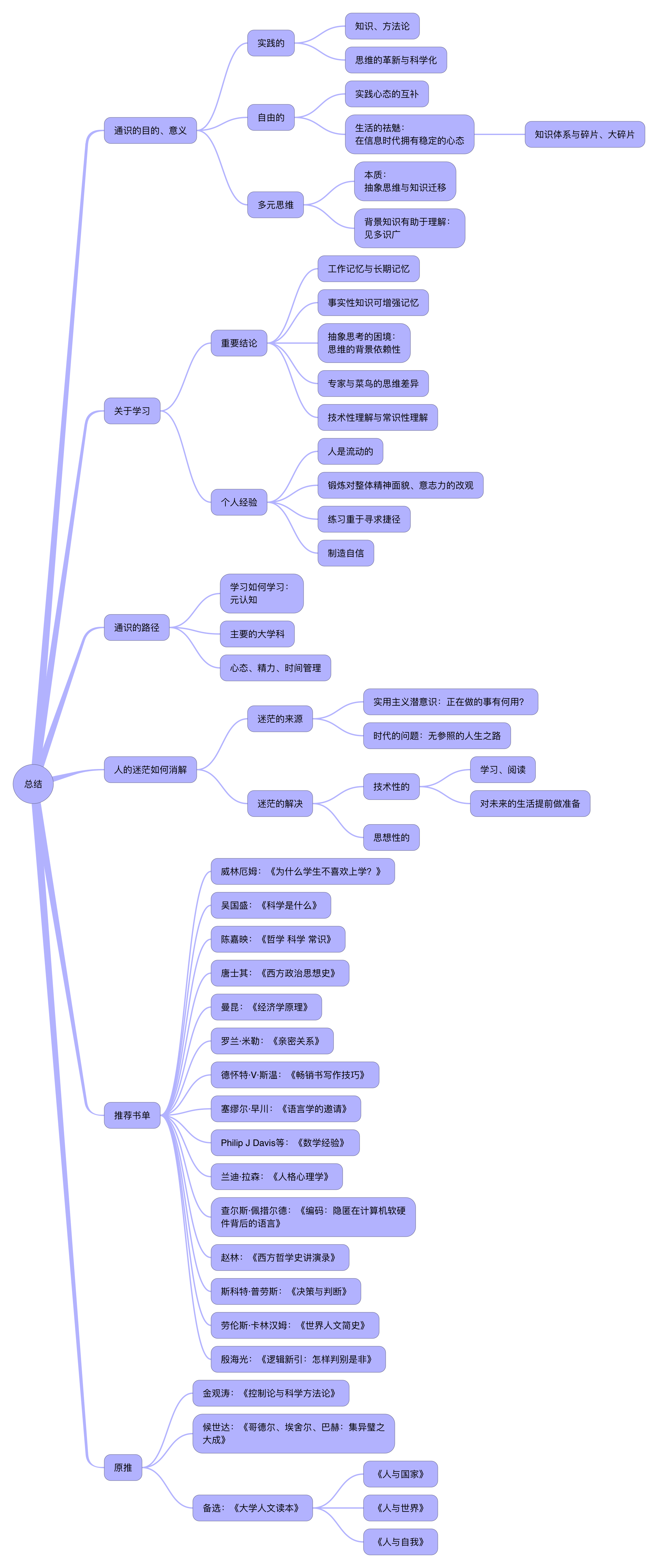 通识教育主要是为了革新认知、开阔眼界。在我看来,一般分为:哲学、数学、经济学、政治学、社会学、文学。