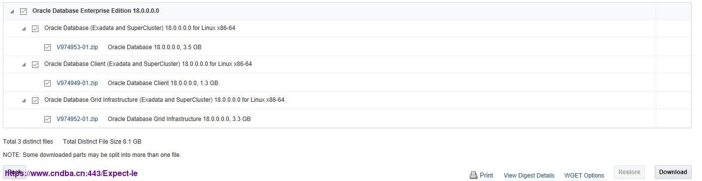 Oracle 18c已经出来一段时间了,现在官网可以下载Client,但是还没有Database和Grid的下载链接。不过可以通过https://edelivery.oracle.com来下载