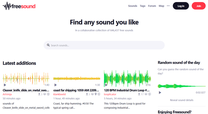最新发现的一个免费音频下载网站,以一些自然和人物类的音频素材为主,而且也有专门的音乐论坛,可以跟大佬讨论视频中的音乐使用问题,同时有不错的音频使用技巧和攻略,让你快速上手配乐和音效制作!