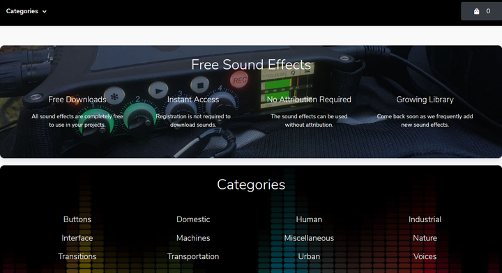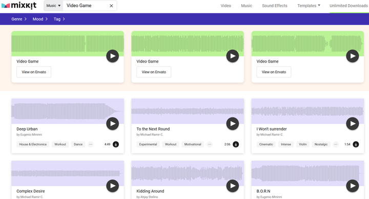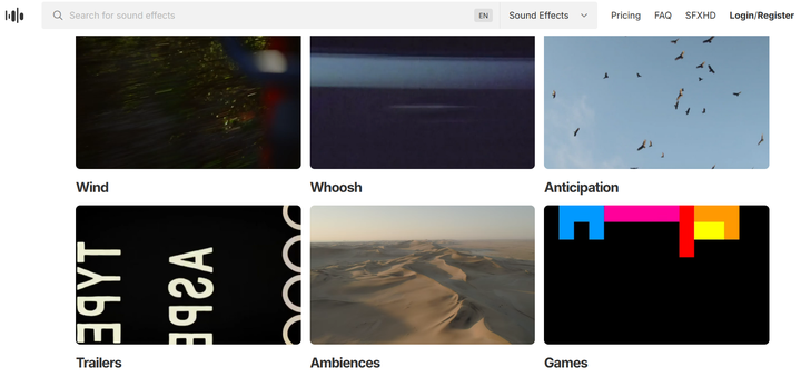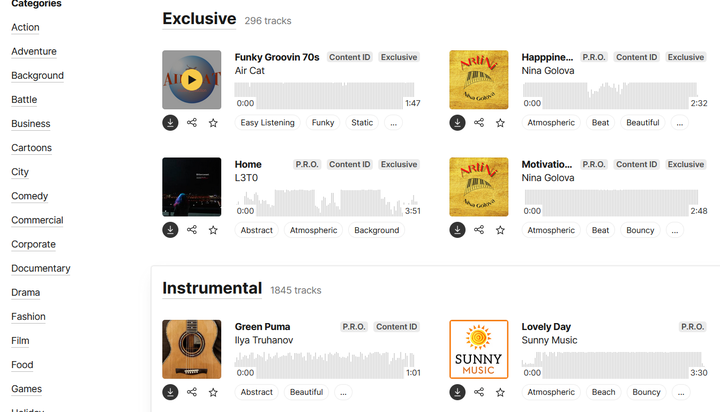 这是一个以正版商用音乐为主的素材库,但是也有少量的免费音效可以进行下载,目前网站的界面也是可以用英文进行搜索哒,个人比较喜欢这个站点的影视和游戏类音乐,适合做混剪和游戏开发的朋友使用。