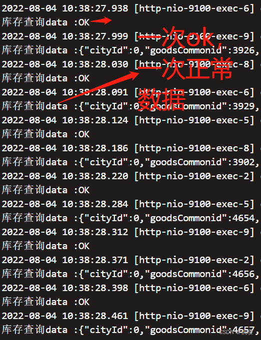我先去查get数据,然后再去set数据,get获取到的值就是正确的,然后set值进去返回的是ok,如果网络有延迟,或者服务超时的话,就可能导致错位,get本应该返回的数据,接口拿到的是ok 也就返回了ok,因为打印的日志中返回的也是一次正确数据,一次错误数据(ok),也正好错位了、、、