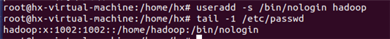 第二个用户,要求用户名为hadoop,不允许其有家目录不能登录系统。