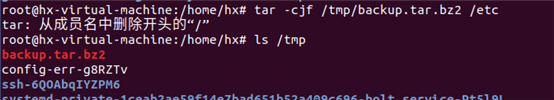 4:将/etc打包,放置于/tmp目录下,并且命名为backup.tar.bz2