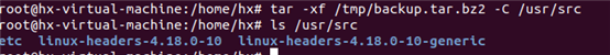 5:将backup.tar.bz2释放在/usr/src下,并将源文件进行解压。