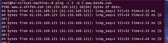 6:测试网络连通性,连通www.baidu.com,ping通5次即可。