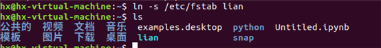 7:为/etc/fstab创建软链接文件,名称为lian,放置于当前登录用户的家目录中。