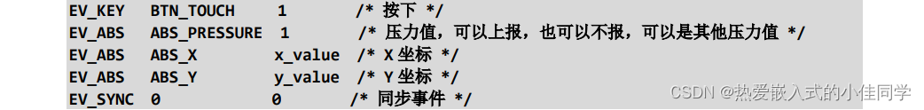 Linux 驱动程序中,会上报触点的 X、Y 数据,注意:这不是 LCD 的坐标值, 需要 APP 再次处理才能转换为 LCD 坐标值。