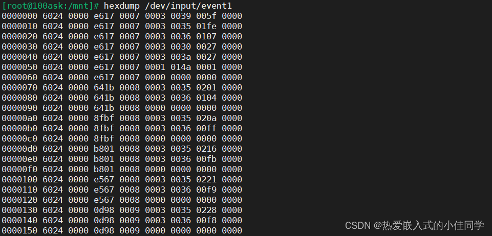 假设你的开发板上电容屏对应的设备节点是/dev/input/event,执行以下命令: