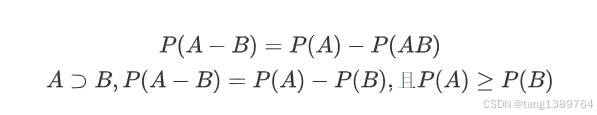 4.差集:如果事件 A 发生而事件 B 不发生,则表示这些事件的差集发生了。即将事件A中的A和B的公共部分去掉。
