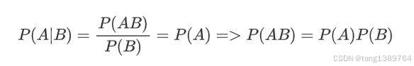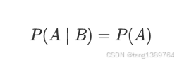 如果事件 A 和事件 B 是独立的,那么事件 A 在事件 B 发生的条件下的条件概率 P(A∣B)等于事件 A 的先验概率 P(A):