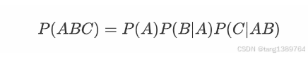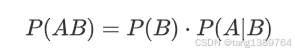 这个公式说明了事件 A 和事件 B 同时发生的概率等于事件 B 发生的概率乘以在 B 发生的条件下 A 发生的概率。