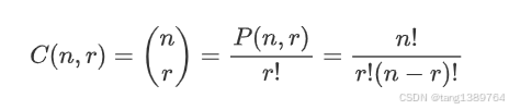 给定一个包含 n 个元素的集合,从中选择 r 个不同元素(r≤n)进行组合,意味着这 r 个元素的顺序并不重要。