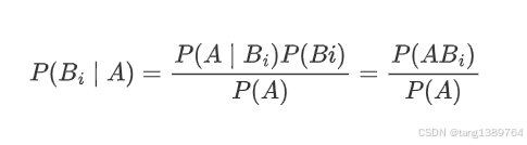 P(Bi∣A) 是在事件 A 发生的条件下事件 Bi发生的条件概率(后验概率)。