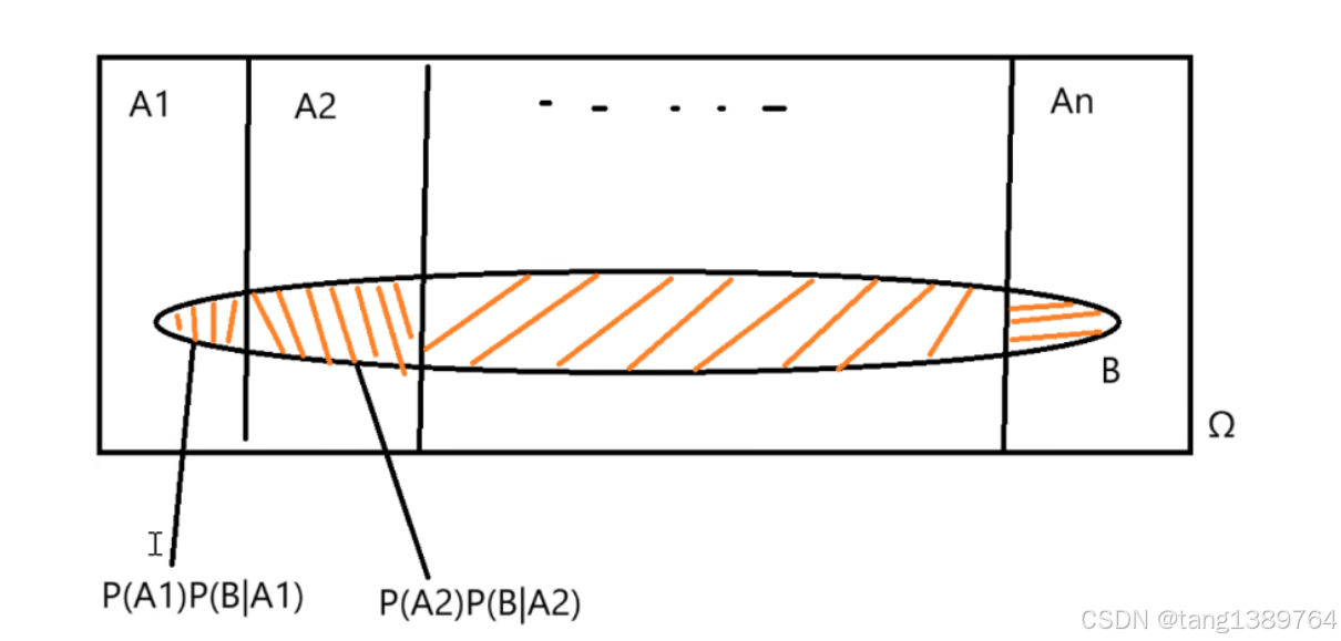 假设事件 A1,A2,...,An 是样本空间 Ω 的一个完备事件组,即这些事件两两互斥,并且它们的并集是整个样本空间。如果我们想计算事件 B 的概率,可以使用全概率公式: