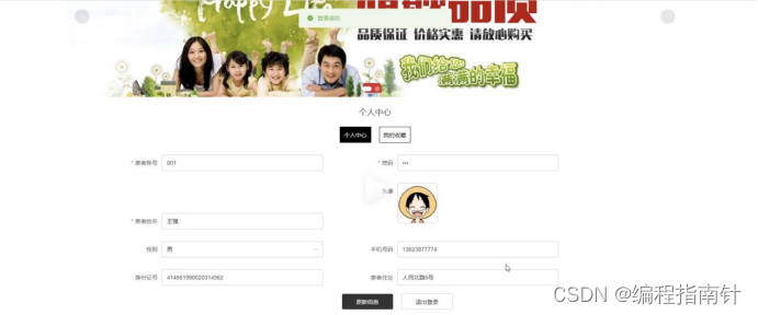 个人中心:在个人中心页面通过填写个人详细信息进行信息更新操作,还可以对我的收藏进行详细操作;如图5-5所示:
