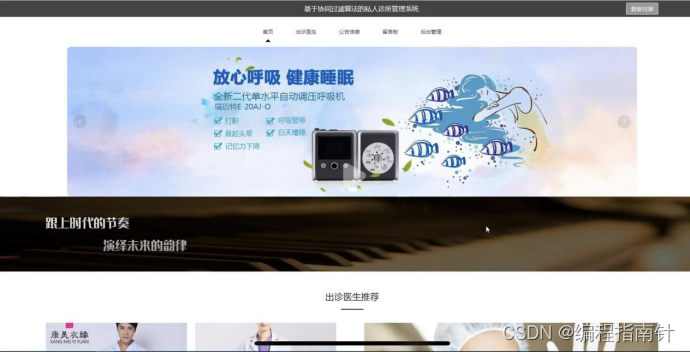 当人们打开系统的网址后,首先看到的就是首页界面。在这里,人们能够看到私人诊所管理系统的导航条。系统首页界面如图5-1所示:
