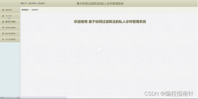 患者进入主页面,主要功能包括对个人中心,预约挂号管理,预约取消管理,病历信息管理,处方开具管理等进行操作。患者主页面如图5-13所示: