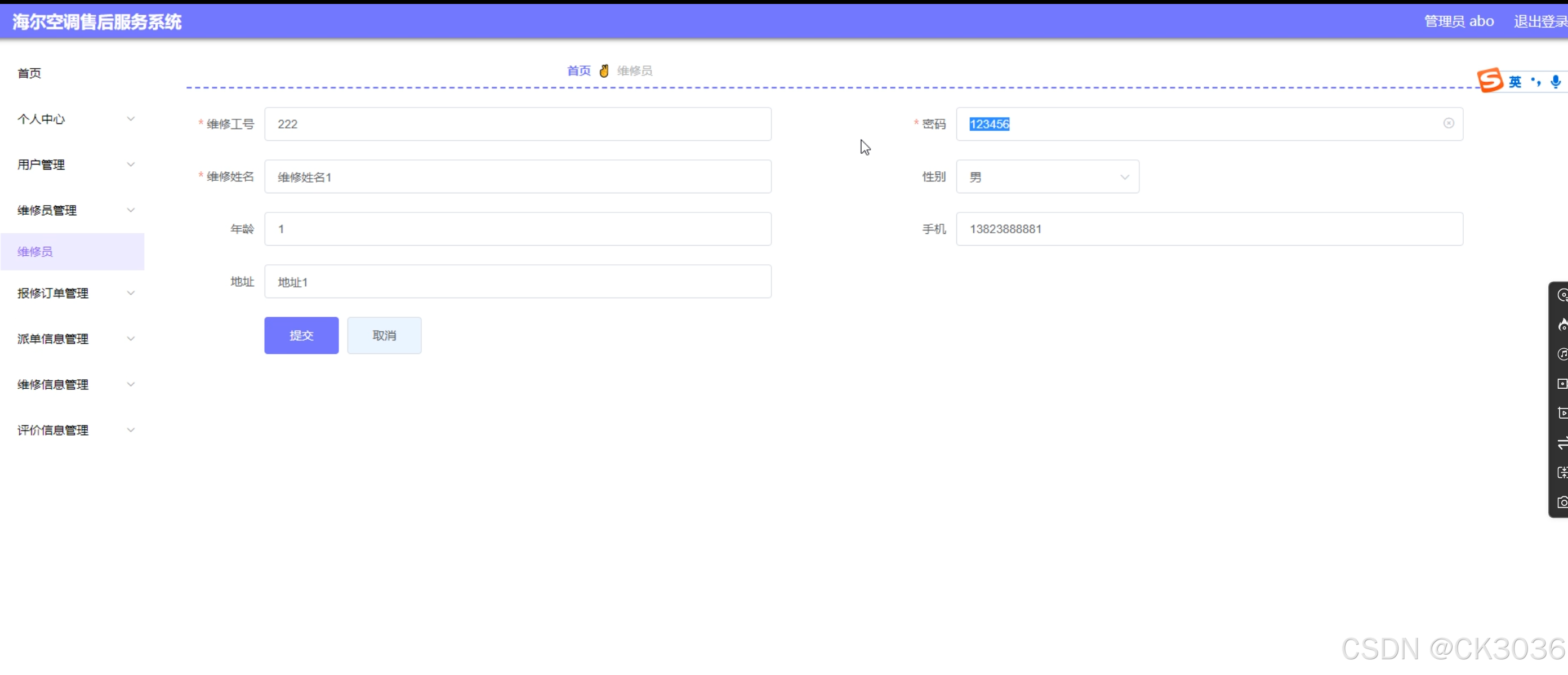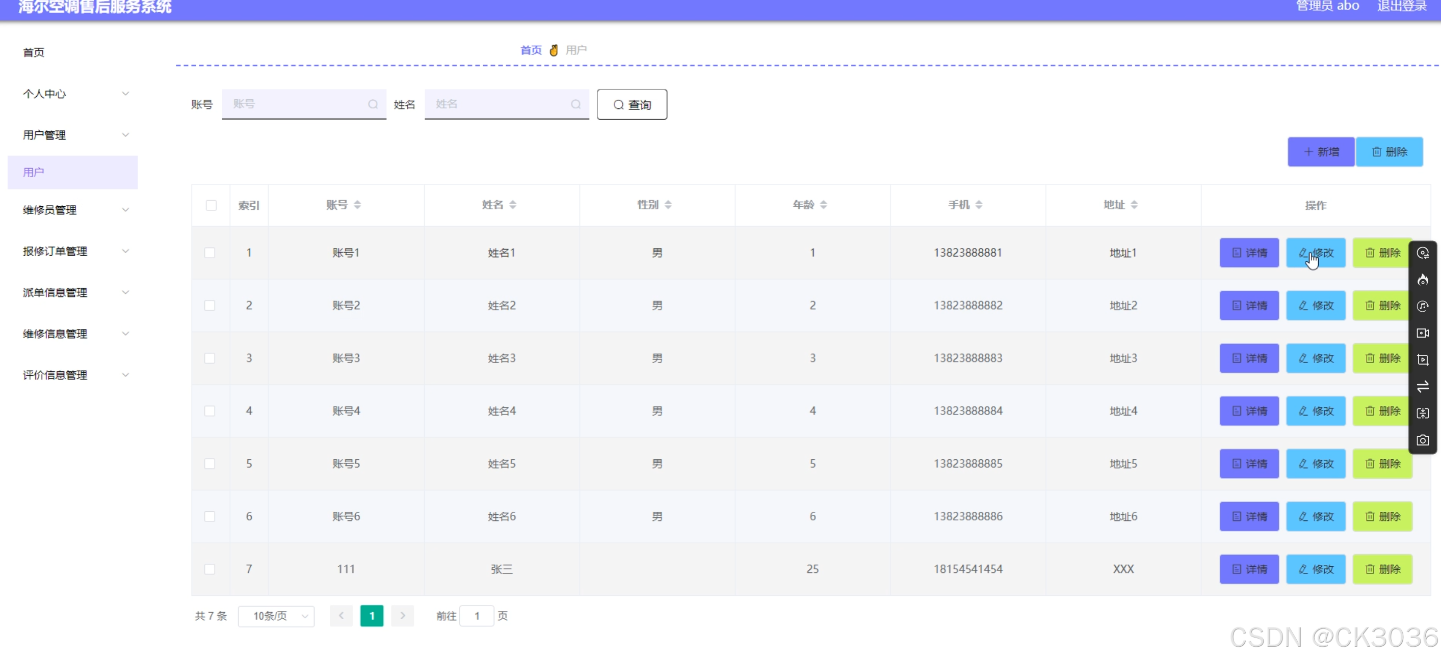 本研究的核心内容是构建海尔空调售后服务系统,该系统主要包含以下功能模块: