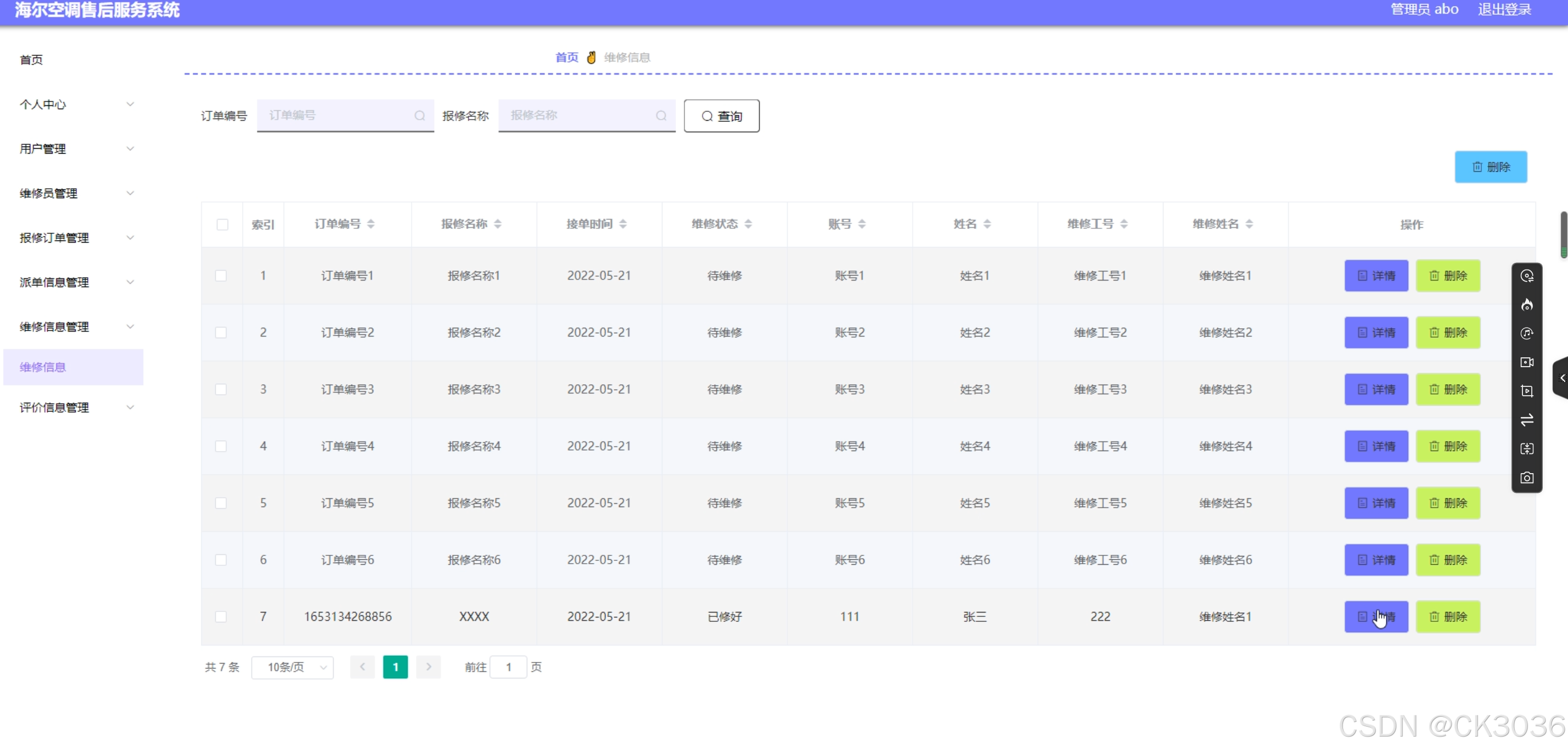 - 收集和分析售后服务数据,为海尔空调的售后服务管理提供决策依据。