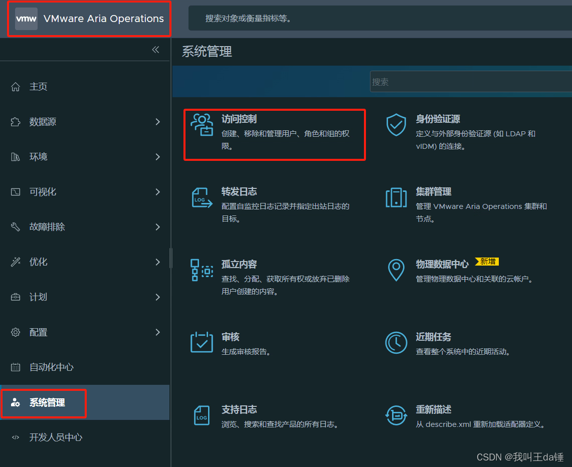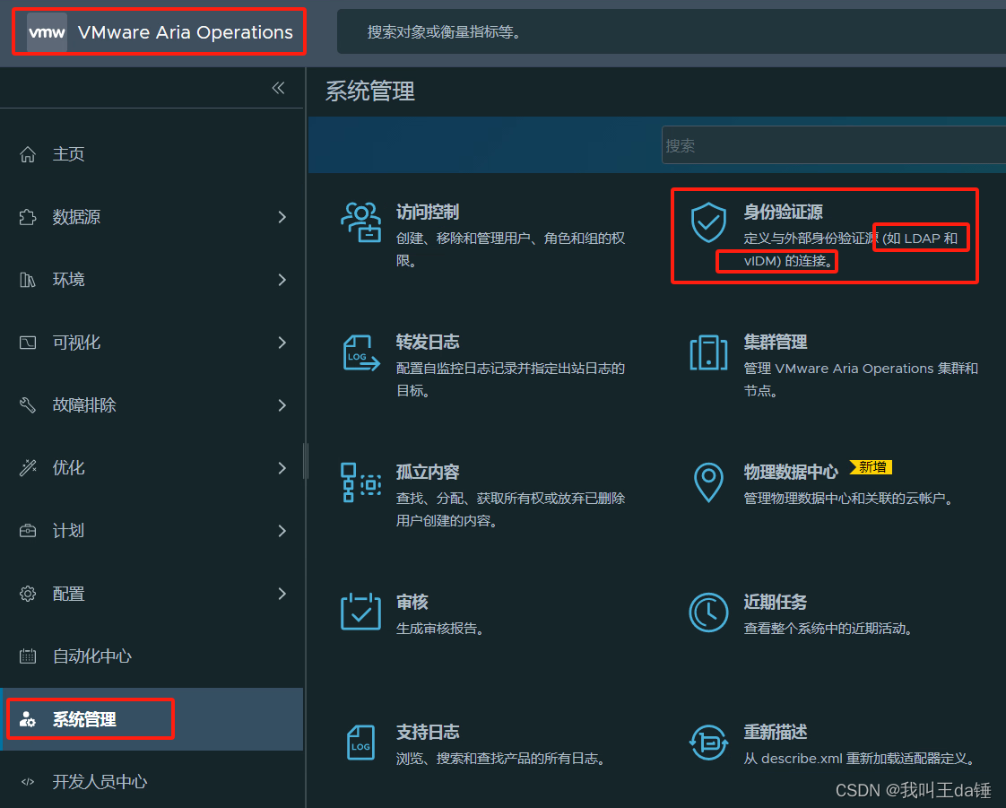 1、通过vRops的ip地址访问,系统管理-身份验证源