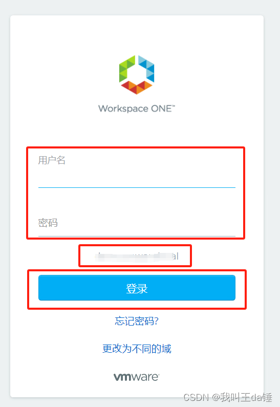 页面会自动跳转到workspace one中,这时候属于我们在域中的用户名和密码,即可完成登录。