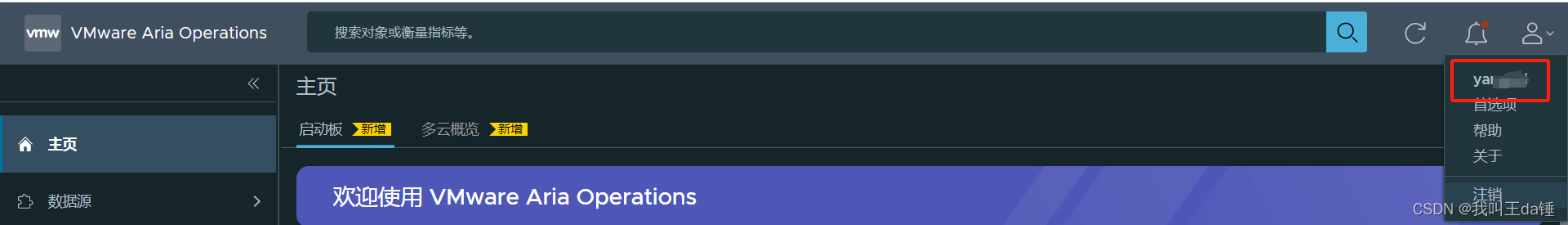 在右上角看到,用户名已经不再是admin,同时这个vIDM生成的这个令牌可以在关联的所有vmware平台中生效,再次打开vRops或者打开关联的其他平台,在令牌生效时间范围内都不需要再次输入密码。