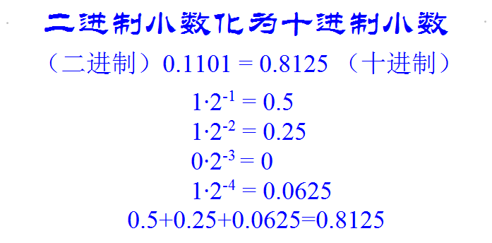 所以,二进制的整数或者小数转化为十进制数时,把每个数位上的0或1乘以对应的数位,再把积相加即可。