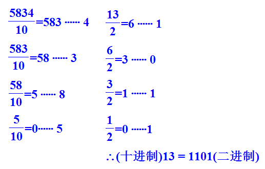 下面举具体例子说明十进制数和二进制数互相转化的方法