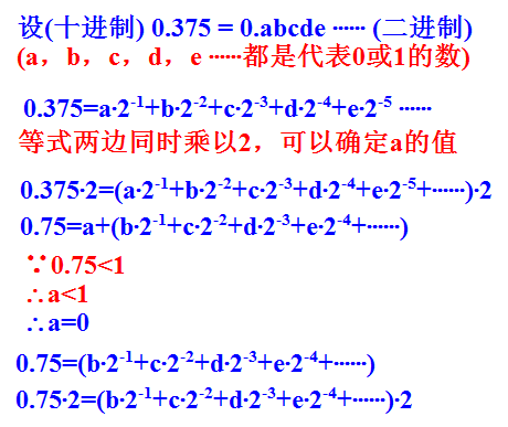 十进制的整数或者小数化为二进制数,看上面给的方法就很难,其原理用语言表达出来,想要严谨、简洁也很难。这里我就不试着表达了,用算式表达我的思考过程吧。
