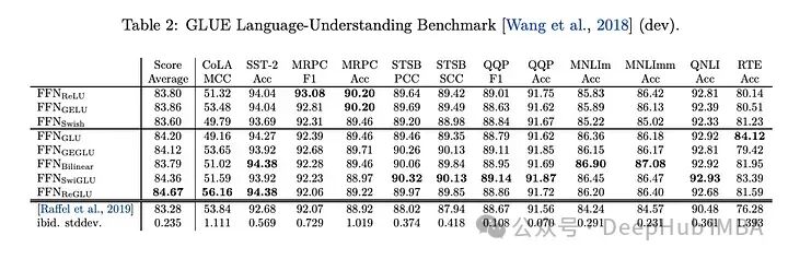 SwiGLU与其他GLU变体进行比较,我们可以看到SwiGLU在两种预训练期间都表现得更好。