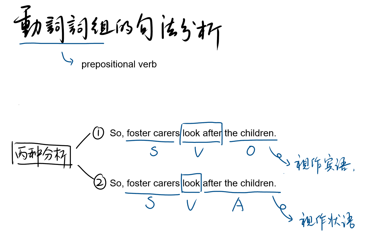 不及物动词加介词,把这个整体看作动词短语。而且是及物性质的。比如look after。 就是及物性质的动词短语。I look after my sister.这句话就是主谓宾结构。