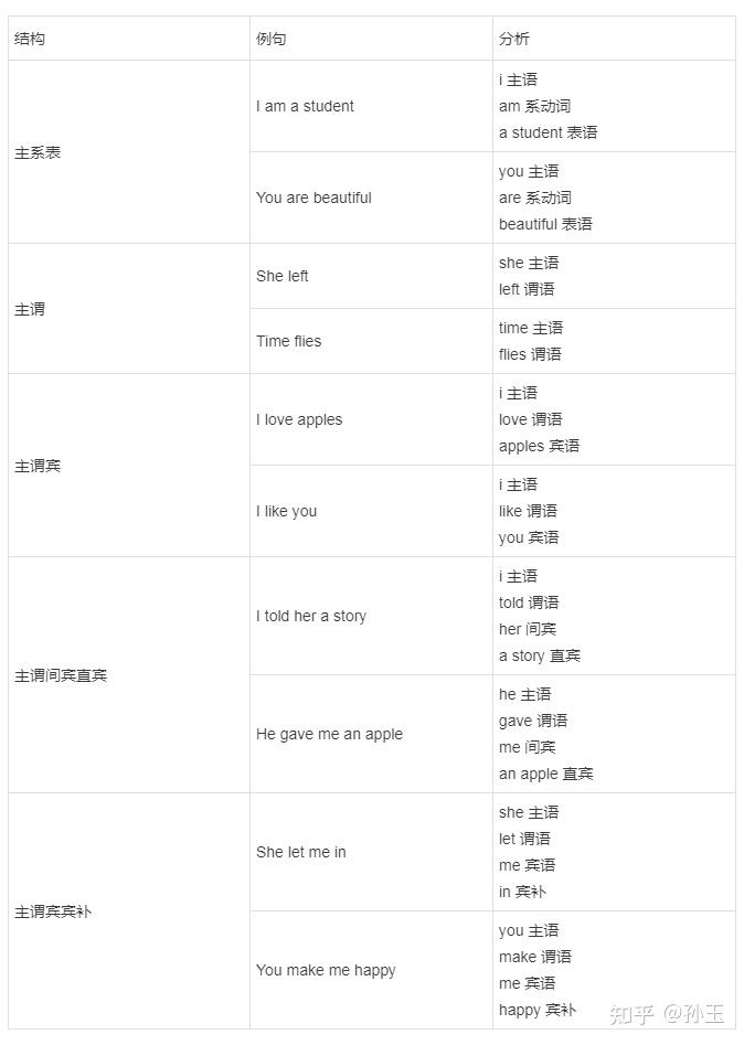 7种典型的句子结构(注意,并不能包含所有句子,典型的比如there be句型、it作假主语的句型并不在这之中):