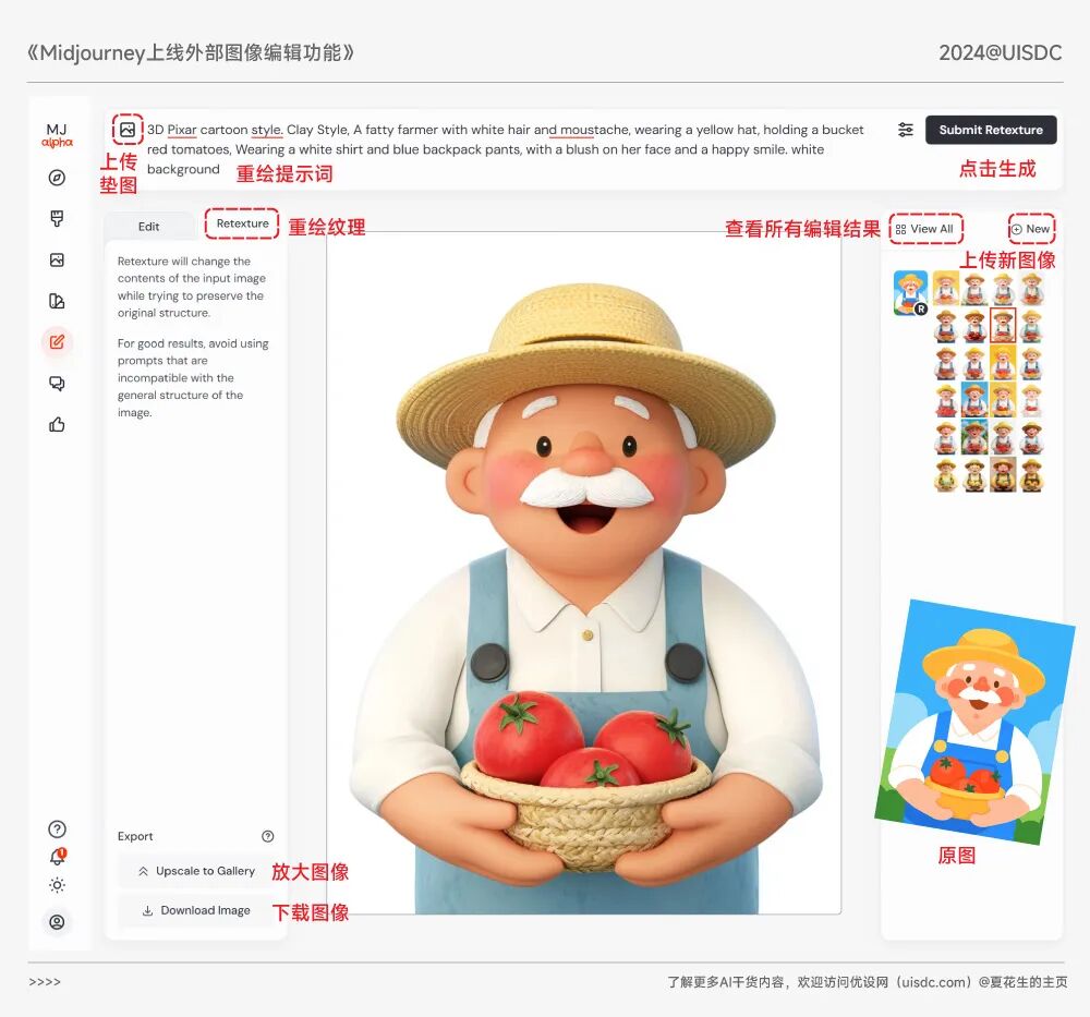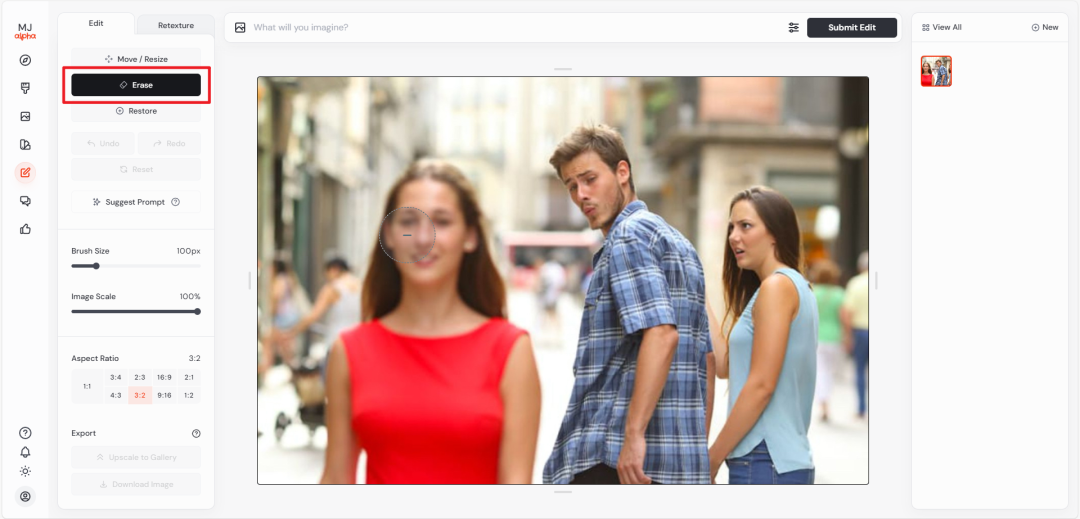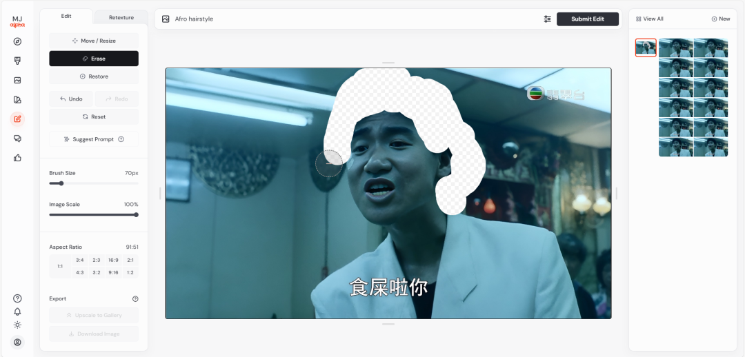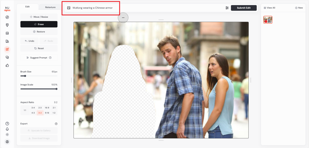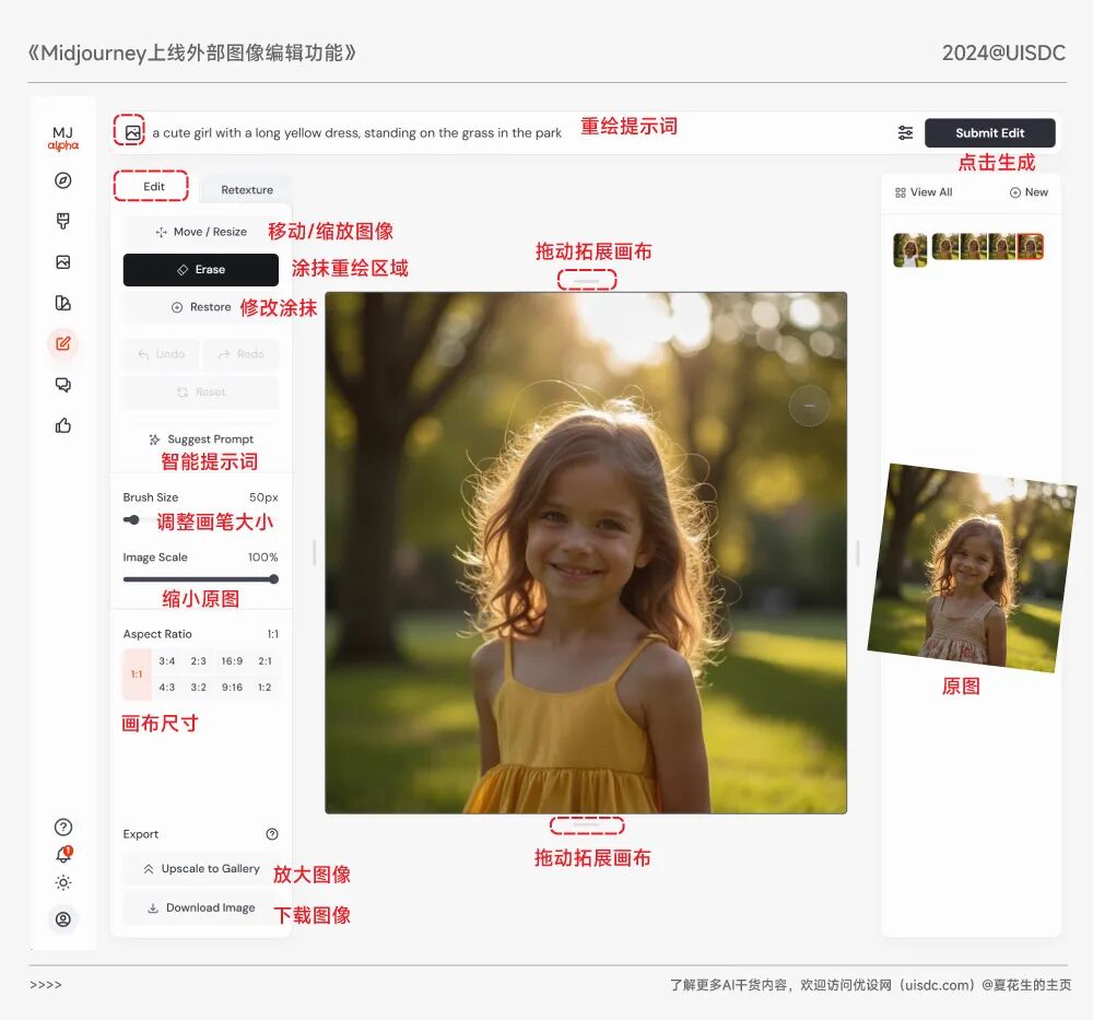 MJ不久前也开放了编辑功能,但只能针对自己用MJ生成的图片。-