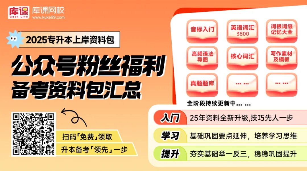 25年/26年升本人可以每天在公众号【库课专升本】上面,打卡学习!