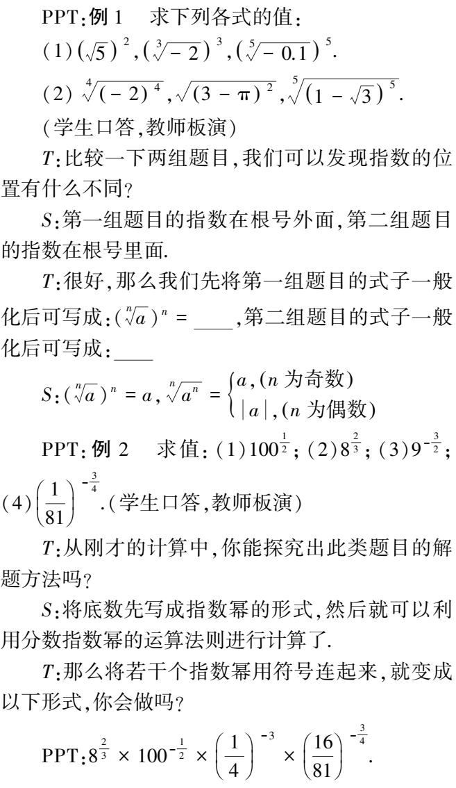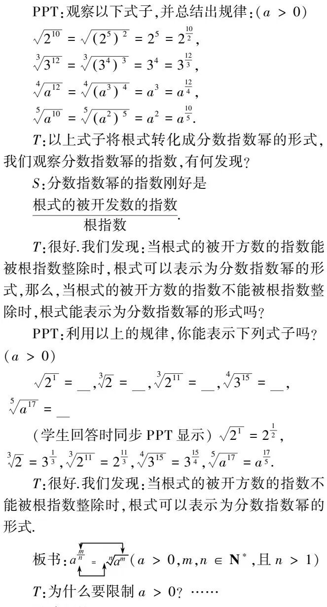本设计节选自:李大永, 章红. 基于整体把握的运算主线下的"分数指数幂"教学[J]. 数学教育学报, 2016, 25(1):6. 仅提供教学过程,更多内容详见原文。