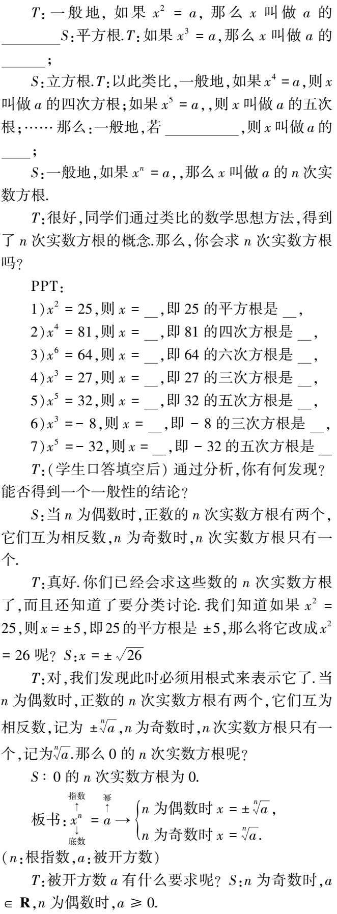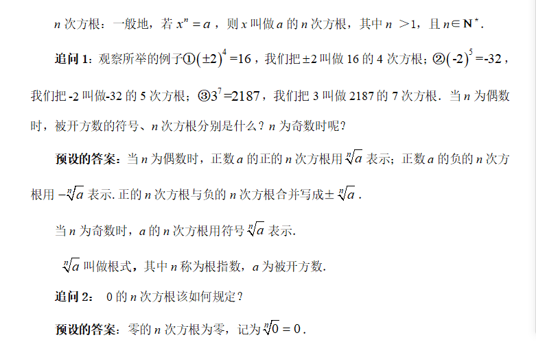 (1)学生能从平方根、立方根的概念学习过程中,归纳出一个数的n次方根定义,并能结合具体的例子理解n次方根的含义,及