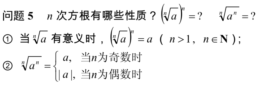 追问1:根据n次方根的定义和数的运算,我们知道