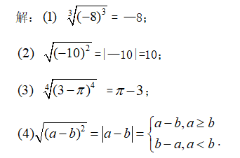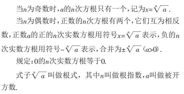 设计意图:通过简单应用,落实一个数到底有没有n次方根,一定先考虑被开方数到底是正数还是负数,还要分清n为奇数和偶数两种情况.通过反例说明两步缺一不可.如果被开方数是一个正数,那么