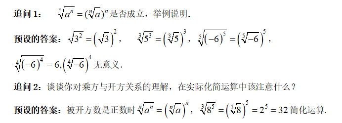 是一定成立的,并且其结果就是.为引出分数指数幂做铺垫.