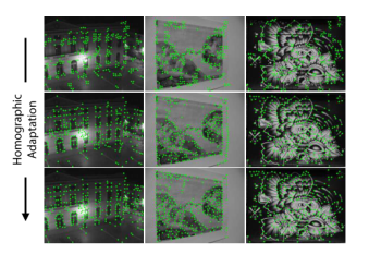 Homographic Adaptation 旨在实现兴趣点检测器的自我监督训练。它多次将输入图像进行单应变换,以帮助兴趣点检测器从许多不同的视点和尺度看到场景。以提高检测器的性能并生成伪真实特征点。